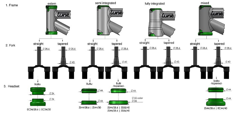 Выделяют следующие виды рулевых колонок на велосипед: