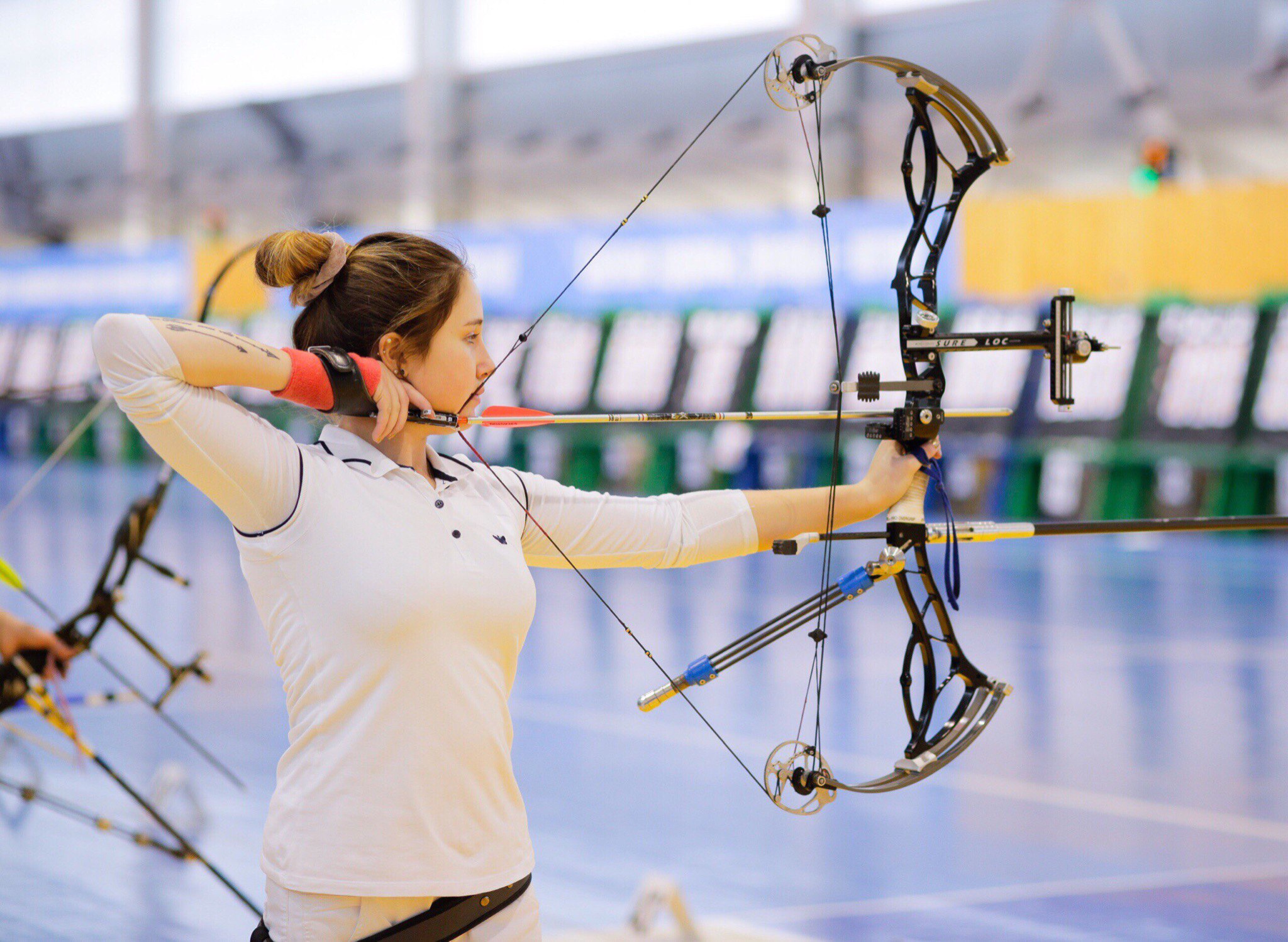 - Выверните левый локоть, чтобы он не мешал движению тетивы.